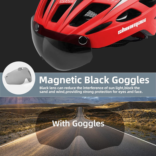 Bike Helmet, CPSC/CPC Bike Helmet for Adult Men Women with Magnetic Goggles&Led Back Light Cycling Helmet Adjustable SM-T69